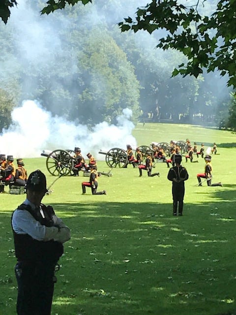 Last Saturday, while walking the tree-lined Grosvenor Place promenade to Buckingham Palace, there was a loud explosion. Very loud. Stop-in-your-tracks loud. It sounded like a canon blast. With London, the greatest melting pot of civilization in the world, wearing a terrorist’s bulls-eye I said to my colleague Mat Whatley, “I hope that isn’t what I think it is.”