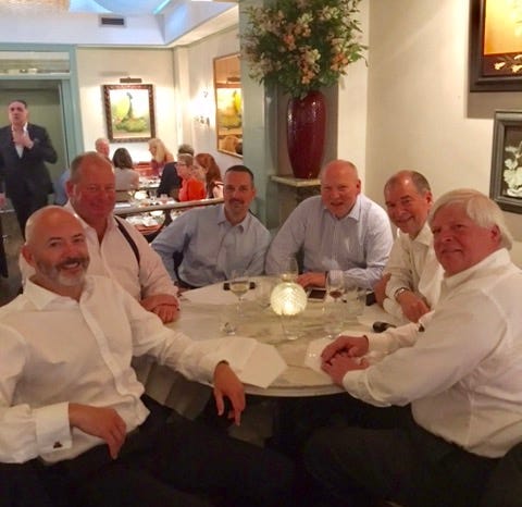 Talking business, politics and Chelsea football at Daphne’s in London with my British blokes- Matt Webb, Shaun Scade and Charlie Boyd along with Medjet colleagues John Gobbels and Mat Whatley.