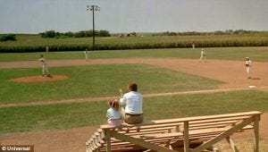 Fun to watch Thursday night’s baseball game between the Yankees and White Sox that was played at the site of Field of Dreams. Other than the Yankees losing, the game was a classic with a walk-off Sox win. Nobody complained about a three hour, thirty minute game being too long. The players entrance through the cornstalks was chilling. As for the movie itself, there will always be a part of it that is provincial to me. Field of Dreams was filmed in the summer of 1988 in Dyersville, Iowa, about 20 miles from where I lived and worked in Dubuque, Iowa. The cast of the film also stayed in Dubuque as the Motel 6 in Dyersville was full. I was managing Dubuque Greyhound Park and at night, with little else to do, most of the FOD cast came to the racetrack regularly. I built a friendship with James Earl Jones who invited me to the set to watch filming. Andi and I were there the day that Gaby Hoffman, playing little Karin Kinsella, fell backwards off the bleachers. We also got invited to the world premiere of the film in Dubuque in April 1989. Those are four words that have never been used together again —world, premiere, Dubuque, Iowa. Great movie, great memories.