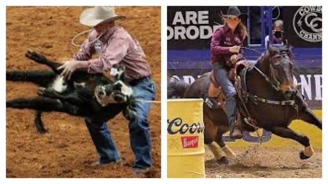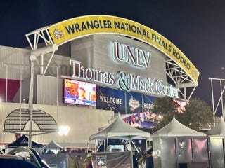 Oh, Chuck and Cindy had it all. The cowboy and cowgirl hats. These weren’t conventional 10-gallon Stetsons either. These were big, maybe 12-gallon if there’s such a thing. So big that the tickets for the seats behind them were marked ‘obstructed view.’ Of course the cowboy sport jacket for Chuck; the trendy faux-fur for Cindy. The jeans need to be faded and the boots neatly shined with a little bit of recent scuff. They easily could have been cast as extras in Landman. Andi gave it a go—denim shirt, jeans fashionably faded with a trendy tear or two and a pair of evening boots not particularly rodeo trendy. Me? Totally void. At no point last Monday did I consider an emergency trip to Boot Barn, Sheplers or the Wrangler Store. I am a do with what you have kind of guy, so I went with it: jeans more worthy of biz casual than rodeo dirt; no boots, but Nike black sneakers with a UNLV basketball logo signifying being in the home arena of the Rebels; a stylish black cap with a faint imprint of Fulham from the English Premier Football League. However, I did decide to go Wild West with the best I could find: my Vegas Golden Knights pullover— the Knights play in the Western Conference of the National Hockey League. That’s my only alternative to western wear.