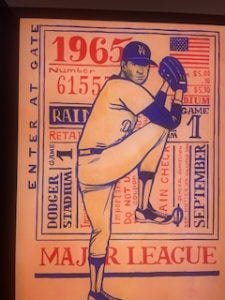 Sandy Koufax was the anti-Roger Craig. The typo from the Tel Aviv museum display is easy to find. The word ‘reverse’ is spelled ‘reverce.’ The inaccuracies are much tougher; if anyone noticed please go right to the bonus round. Game 1 was played on October 6, 1965, not in September as the mock ticket states. October 6 was also the first day of Yom Kippur, the holiest day of the Jewish year and Koufax, the game one starter, chose not to pitch that day in observance of the holiday. The game was played in Minneapolis, not Dodger Stadium as the ticket also indicates. One of the players I profiled in my 2017 book Big League Dream (www.bigleaguedream.com) was the late Jim ‘Mudcat’ Grant who was the starting pitcher for the Twins in Game 1. Grant was eager for the match-up against Koufax and incredibly disappointed when Sandy decided not to play. It also produced one of the best quips in baseball history. The Dodger starter instead was Don Drysdale, no slouch himself. The Twins scored seven runs off Drysdale in a little over two innings and when Dodgers manager Walt Alston came out to the mound to take his big right-hander out of the game Drysdale flipped him the baseball and said, “I bet you wish I was Jewish too.”