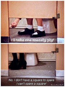 Who knew, a quarter of a century later, how apropos the 1994 ‘Can you spare a square?’ Seinfeld toilet paper routine between Elaine and Jerry’s girlfriend du jour Jane (Jami Gertz) would actually resonate. Sorry, we don’t have a square to spare these days either.