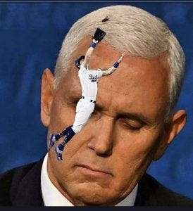 That damn fly drove me nuts on Wednesday night. At first, I thought it was on my screen until Mike Pence kept moving his head and the fly went with him. It was a true testament to the resonance of Vitalis Maximum Hold hair spray. Unfortunately, that was the highlight of the vice-presidential debate for me. It’s easy to see why the Democrats spurned Kamala Harris’ candidacy in the primaries, and just once I’d like to hear Pence answer a question with a response something other than what he thinks his boss wants to hear. I’ll pass on both of them.