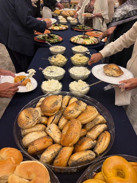 If you are looking for something original today with your Sunday Morning Coffee well you’ve come to the wrong place. Nothing this week. Took a break. I used about everything I had in last Sunday’s Scramble. Plus, I knew this would be a tough week with the Yom Kippur holiday and the 24 hour fast that came with it. Actually ours was 26 hours finishing dinner at home before sunset on Wednesday night then spent virtually all day in synagogue on Thursday. In spite of gnarly hunger pangs the holiday turned out to be rewarding. Our clergy leaders at Temple Sinai, Rabbi Ilana Baden and Cantor David Perper, were marvelous keeping our attention to song and prayer and not famish. Finally at seven o’clock Thursday evening the bagels, lox, cream cheese, egg and tuna salad spread was a site for sore stomachs. About 200 of them. And then the rugelach for dessert tasted so much sweeter when the phone pinged alerting the Yankees just eliminated the Red Sox in the MLB playoffs.